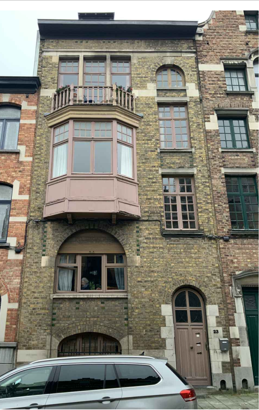 Sur cette belle façade de Schaerbeek, nous avons remplacé l’ensemble des châssis ainsi que la loggia, en respectant scrupuleusement les formes et les cintrages d’origine.